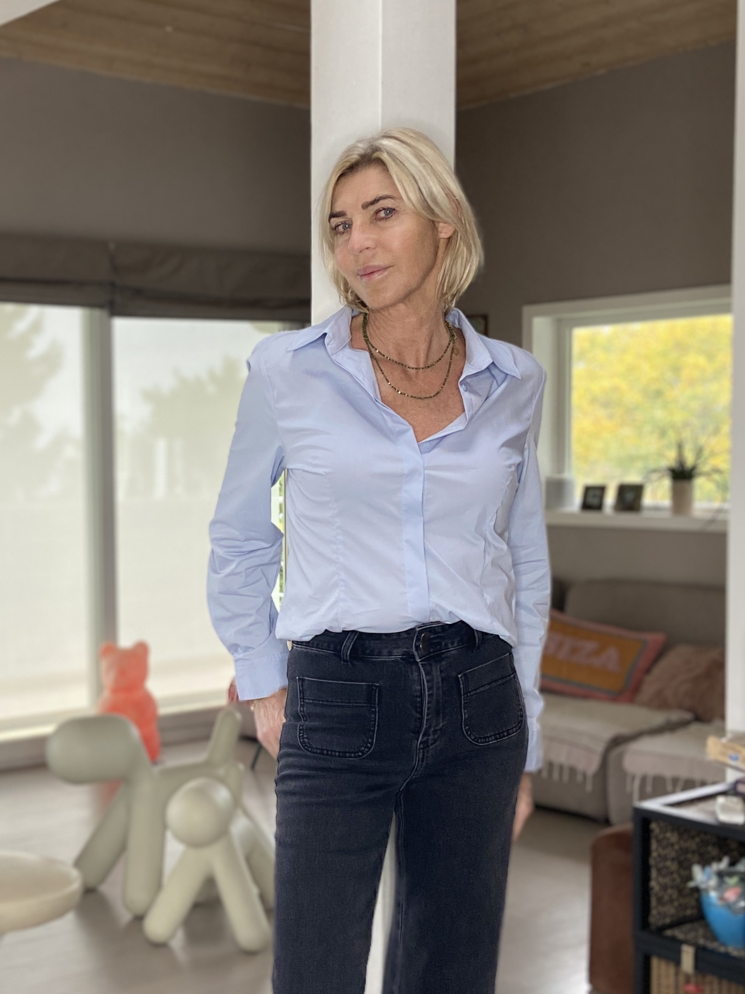 Cintré et confortable, je l’ai choisi en blanc et en bleu clair.